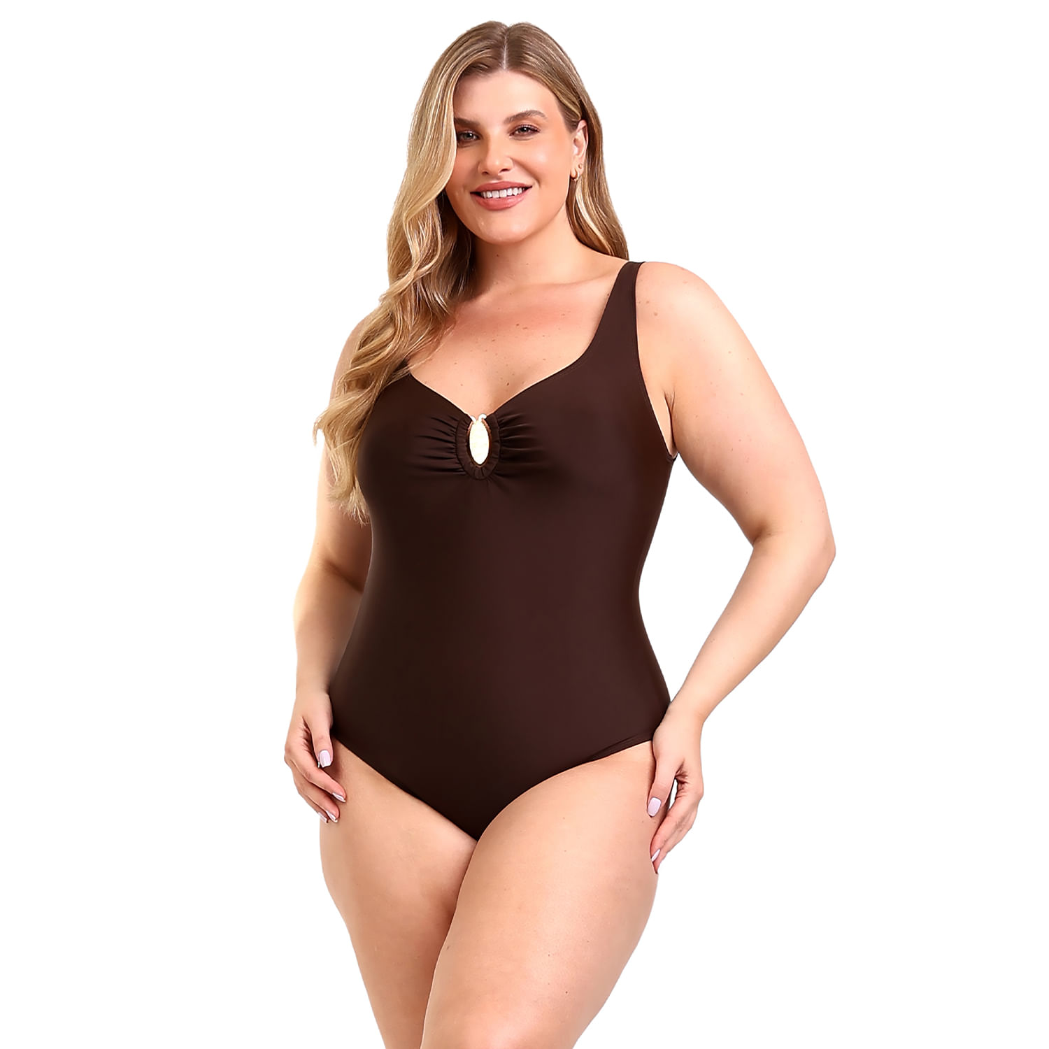 Confeccionado em 85% poliamida e 15% elastano, com forro 90% poliamida e 10% elastano. O modelo conta com forro control que ajuda a reduzir medidas e modelar o corpo de forma sutil. Seu decote suave conta com uma charmosa fivela dourada, além de alças largas e uma alça fina extra removível que garante mais segurança. Sem aro e sem bojo, oferece liberdade com elegância. Sua parte traseira ampla garante conforto e segurança durante o uso, tornando-o perfeito para aproveitar os dias de sol com confiança.